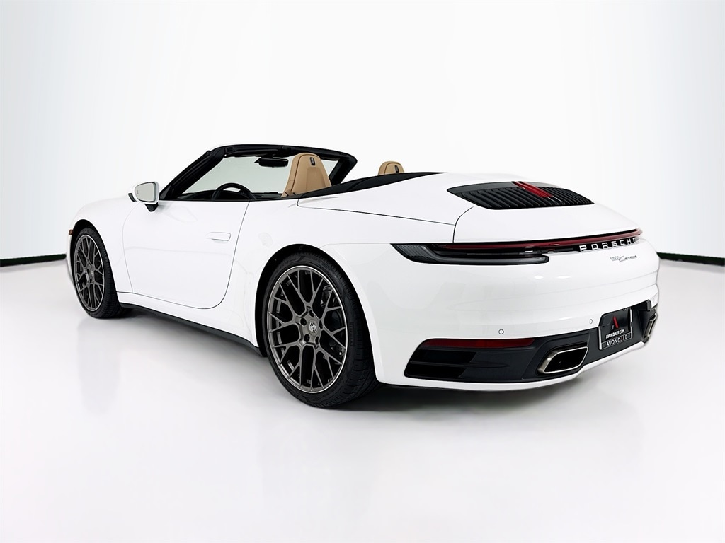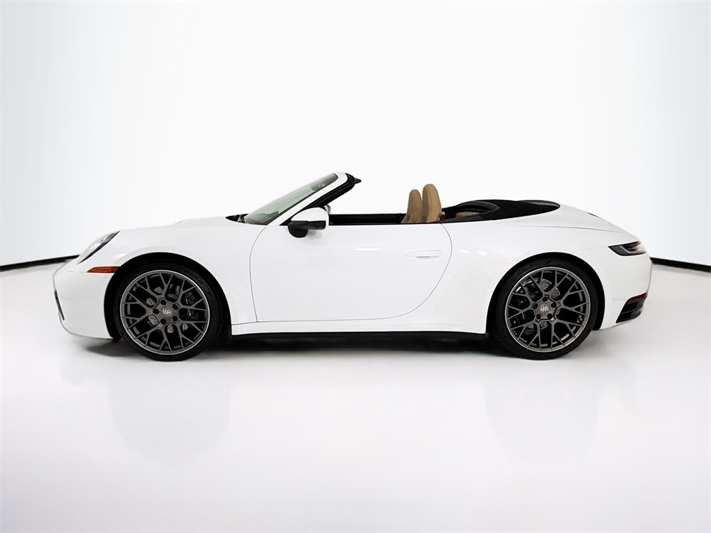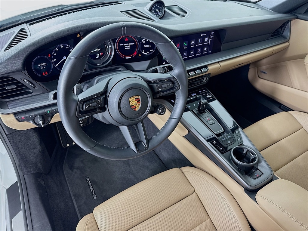 2022 Porsche 911 Carrera Cabriolet in White with Interior in Black/Mojave Beige. Under Porsche Approved Certified Warranty for up to 3 Years and Unlimited Miles from Expiration of Porsche New Vehicle Warranty. New Vehicle Warranty Start is 5/28/2022. Premium Package: Power Folding Exterior Mirrors, Ambient Lighting, Ventilated Seats (front), Storage Package, BOSE Surround Sound, PDLS+, Surround View, and Lane Change Assist. Also with: Sport Chrono Package, Extended Range Fuel Tank, 20"/21" RS Spyder Design Wheels, Power Sport Seats (14-way) with Memory Package, and Heated GT Sport Steering Wheel in Leather. Available at Porsche Grapevine 1280 Texan Trail Grapevine TX 76051.