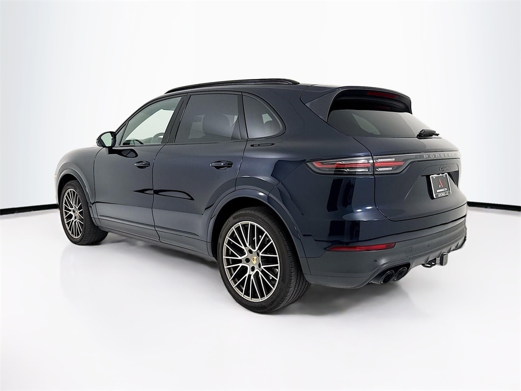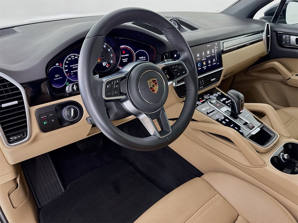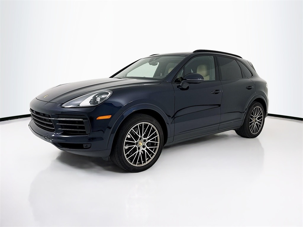 2023 Porsche Cayenne Platinum Edition in Moonlight Blue Metallic with Interior in Black/Mojave Beige. Under Porsche Approved Certified Pre-Owned Warranty for 2 Years and Unlimited Miles from Expiration of Porsche New Vehicle Warranty. New Vehicle Warranty Start Date is 6/3/2023. Premium Package Plus: Power Seats (14-way) with Comfort Memory, Heated Seats (front and rear), Ventilated Seats (front), 4-Zone Climate Control, and Lane Change Assist. Also with: Roof Rails in High Gloss Black, Under Door Puddle Light Projectors, Exclusive Design Fuel Cap, Trailer Hitch, PASM, Locking Wheel Bolts, Heated Steering Wheel, Power Sunblind for Rear Side Windows, Seat Belts in Mojave Beige, Smartphone Compartment with Wireless Charging, Surround View, and Soft Close Doors. Available at Porsche Grapevine 1280 Texan Trail Grapevine TX 76051.