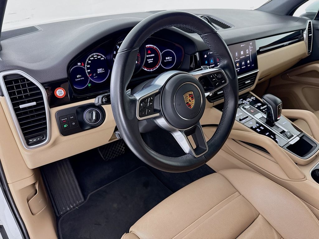 2023 Porsche Cayenne in White with Interior in Black/Mojave Beige. Under Porsche Approved Certified Pre-Owned Warranty for 2 Years and Unlimited Miles from Expiration of Porsche New Vehicle Warranty. New Vehicle Warranty Start Date is 12/19/2022. Options Featured: Porsche Active Suspension Management, 20" Cayenne Design Wheels, Power Seats (14-way) with Comfort Memory, Ambient Lighting, Heated Seats (front and rear), Ventilated Seats (front), 4-Zone Climate Control, Power Sunblind for Rear Side Windows, LED Headlights incl PDLS, Auto-Dimming Mirrors, Surround View, Lane Change Assist, and Comfort Access. Available at Porsche Grapevine 1280 Texan Trail Grapevine TX 76051.