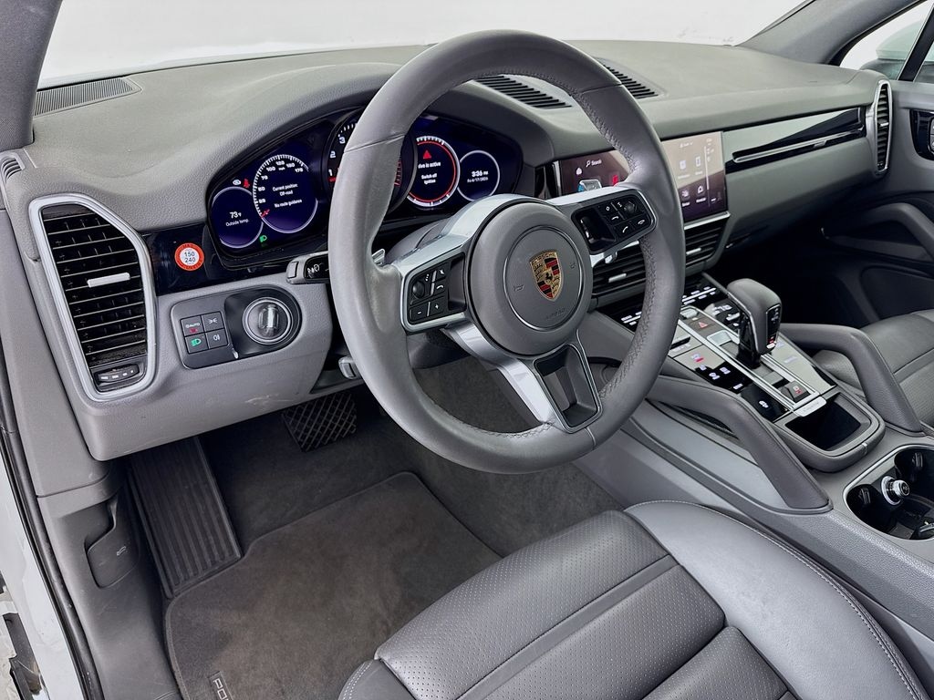 2023 Porsche Cayenne in White with Interior in Slate Grey. Under Porsche Approved Certified Pre-Owned Warranty for 2 Years and Unlimited Miles from Expiration of Porsche New Vehicle Warranty. New Vehicle Warranty Start Date is 3/23/2023. Premium Package: Panoramic Roof, Power Steering Plus, Power Seats (14-way) with Comfort Memory, Ambient Lighting, Heated Seats (front), LED Headlights incl PDLS, Auto-Dimming Mirrors, Lane Change Assist, and Comfort Access. Also with: Roof Rails in High Gloss Black, Window Trim in High Gloss Black, Trailer Hitch, 21" RS Spyder Design Wheels, Surround View, and Adaptive Cruise Control. Available at Porsche Grapevine 1280 Texan Trail Grapevine TX 76051.