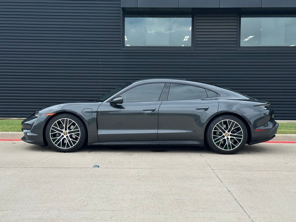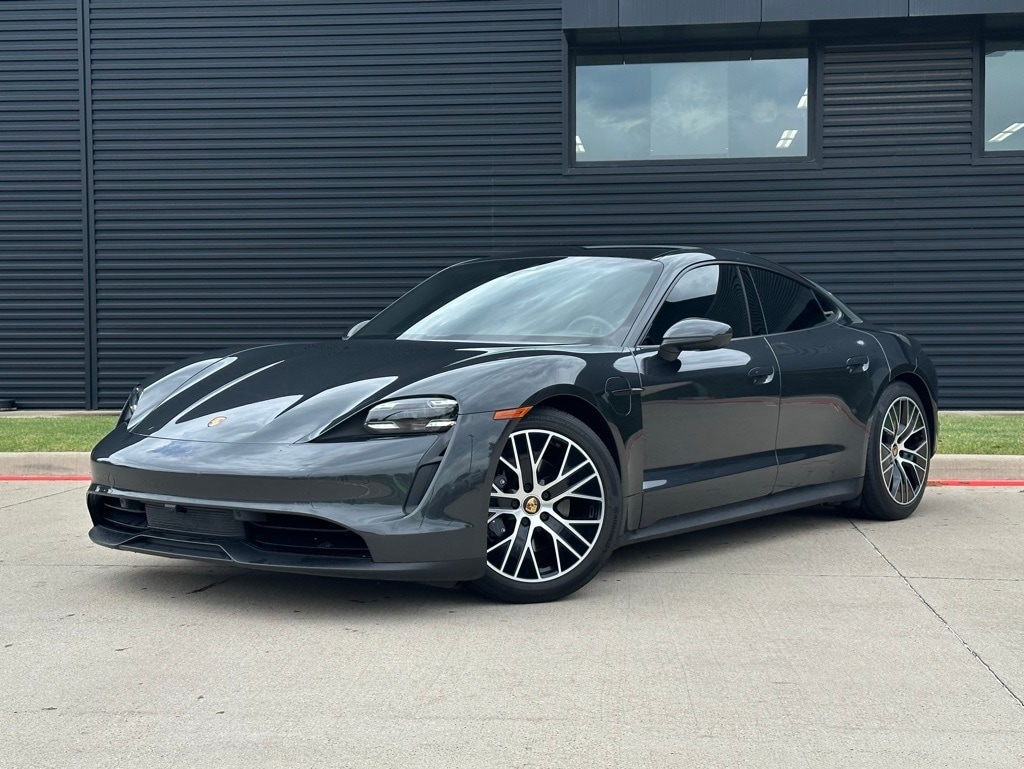 2024 Porsche Taycan in Volcano Grey Metallic with Interior in Black. Under Porsche Approved Certified Warranty for up to 3 Years and Unlimited Miles from Expiration of Porsche New Vehicle Warranty. New Vehicle Warranty Start Date is 9/16/2024. Premium Package: Fixed Panoramic Roof in Glass, Power Seats (14-way) with Comfort Memory, Ventilated Seats (front), Storage Package, BOSE Surround Sound, LED-Matrix Design Headlights incl PDLS+, Power Folding Exterior Mirrors, Lane Change Assist, Surround View, Air Quality System, and Ambient Lighting. Also with: Under Door Puddle Light Projectors, Power Charge Port Cover, Porsche Electric Sport Sound, Wheel Center Caps with Colored Porsche Crest, 20" Taycan Turbo Aero Wheels, Porsche Crest on Headrests (front and rear), Heated Steering Wheel, 19.2 kW On-Board Charger, Mobile Charger Connect. Available at Porsche Grapevine 1280 Texan Trail Grapevine TX 76051.
