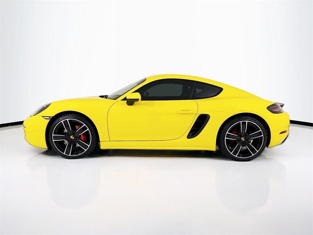2025 Porsche 718 Cayman S in Racing Yellow with Interior in Black. Under Porsche Approved Certified Pre-Owned Warranty for up to 3 Years and Unlimited Miles from Expiration of Porsche New Vehicle Warranty. New Vehicle Warranty Start Date is 3/27/2025. Premium Package: Ventilated Seats, Heated Multifunction Steering Wheel, Power Folding Exterior Mirrors incl Courtesy Lighting, Pane Change Assist, Porsche Entry and Drive, Light Design Package. Also with: Model Designation on Rear in High Gloss Black, Rear Wing in High Gloss Black, Sport Tailpipes in Black, Wheels Painted in High Gloss Black, 20" Carrera Sport Wheels, Instrument Dials in Racing Yellow, Electric Steering Column, Navigation Including Porsche Connect, and Voice Control. Available at Porsche Grapevine 1280 Texan Trail Grapevine TX 76051.