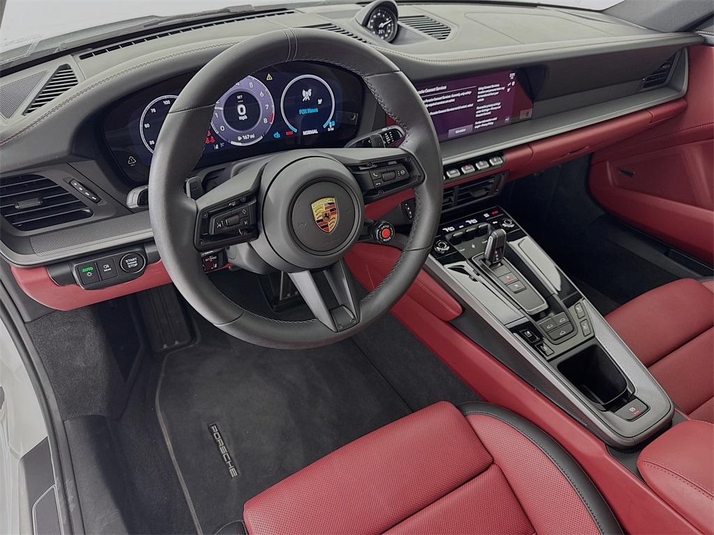 2025 Porsche 911 Carrera in White with Leather Interior in Black/Bordeaux Red. Under Porsche Approved Certified Pre-Owned Warranty for 2 Years and Unlimited Miles from Expiration of Porsche New Vehicle Warranty. New Vehicle Warranty Start Date is 11/13/2024. Premium Package with Remote Park Assist: Ventilated Seats (front), BOSE Surround Sound, Ionizer, Remote Park Assist, and Adaptive Cruise Control. Also with: Electric Slide/Tilt Sunroof in Glass, SportDesign Front Fascia, Power Steering Plus, Front Axle Lift System, Sport Chrono Package, Sport Exhaust System incl Tailpipes in Silver, Extended Range Fuel Tank, Wheel Center Caps with Colored Porsche Crest, 20"/21" Carrera Classic Wheels, Heated GT Sport Steering Wheel in Leather, Porsche Crest on Headrests (front), Power Sport Seats (14-way) with Memory Package, Rear Seats, PDK Gear Selector in Aluminum, Center Console Lid with Model Designation, Door-Sill Guards in Dark Silver Brushed Aluminum - Illuminated, HD-Matrix Design LED Headlights in Black, Under Door Puddle Light Projectors, Lightweight and Noise Insulated Glass, and Preparation for Porsche Dashcam (front and rear). Available at Porsche Grapevine 1280 Texan Trail Grapevine TX 76051.
