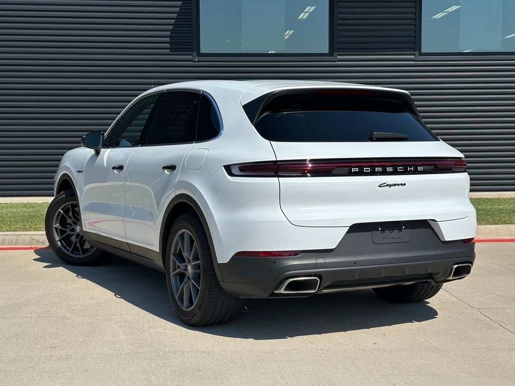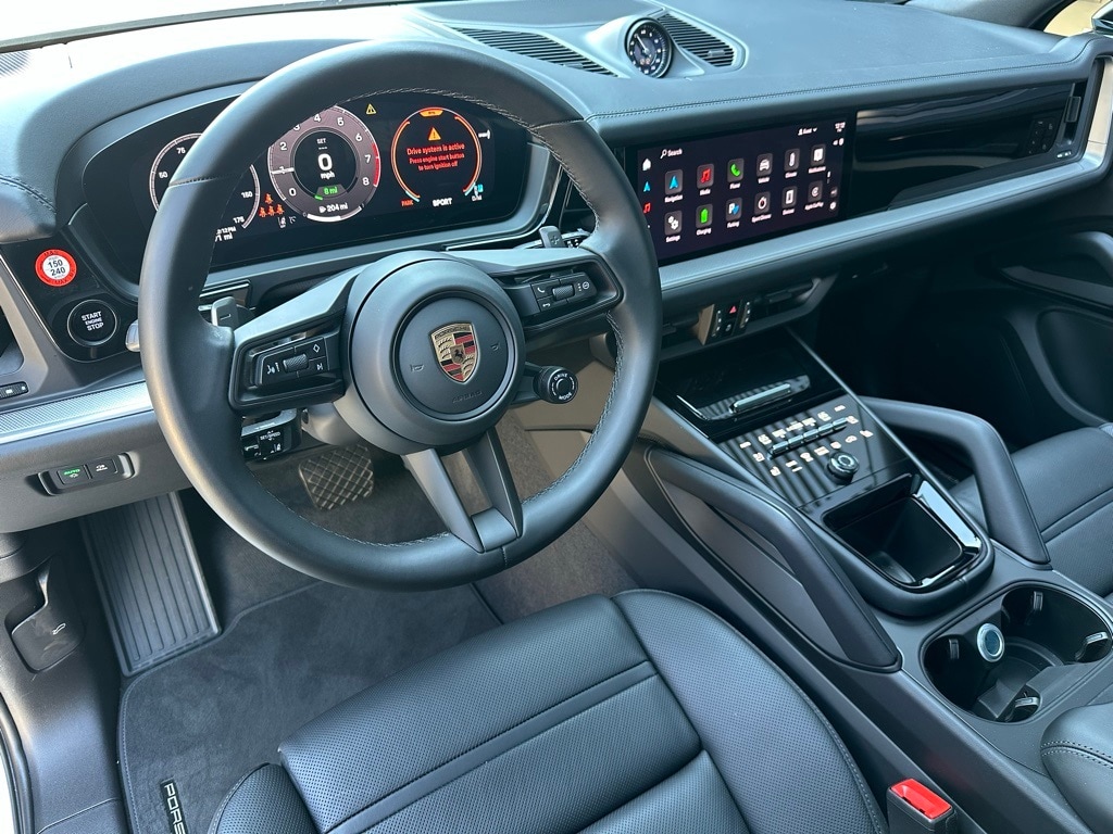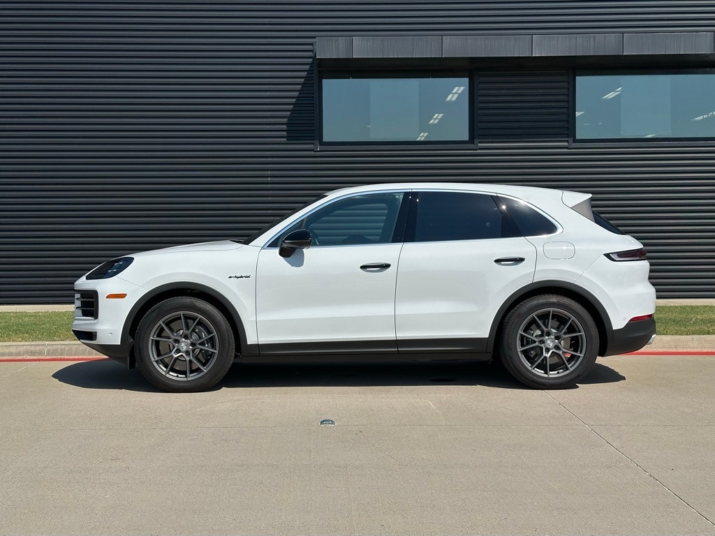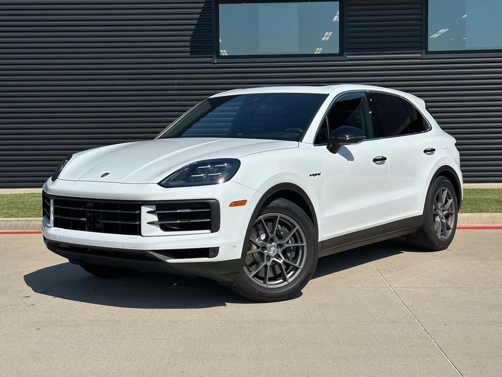 2025 Porsche Cayenne E-Hybrid in Carrara White Metallic with Leather Interior in Black. Under Porsche Approved Certified Pre-Owned Warranty for up to 3 Years and Unlimited Miles from Expiration of Porsche New Vehicle Warranty. New Vehicle Warranty Start Date is 10/05/2024. Premium Package Plus: Panoramic Roof, Power Seats (14-way) with Comfort Memory, Heated Seats (rear), Ventilated Seats (front), BOSE Surround Sound, HD-Matrix Design LED Headlights, 4-Zone Climate Control, Adaptive Cruise Control incl Lane Keep Assist. Also with: Exterior Mirrors Painted in High Gloss Black, Model Designation on Rear in High Gloss Black, Door Handles in High Gloss Black, and 20" Cayenne S Wheels in Vesuvius Grey. Available at Porsche Grapevine 1280 Texan Trail Grapevine TX 76051.