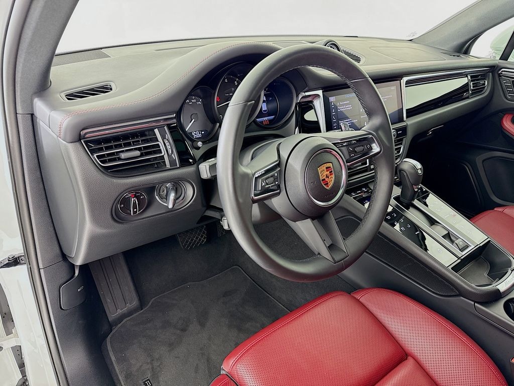 2025 Porsche Macan in White with Leather Package in Black/Bordeaux Red. Under Porsche Approved Certified Pre-Owned Warranty for 2 Years and Unlimited Miles from Expiration of Porsche New Vehicle Warranty. New Vehicle Warranty Start Date is 6/10/2026. Premium Package Plus: Panoramic Roof, Power Seats (14-way) with Memory Package, Heated Seats (rear), Ventilated Seats (front), LED Headlights incl PDLS+, and Lane Change Assist. Also with: 21" Exclusive Design Sport Wheels in Platinum Silver, Heated Steering Wheel, BOSE Surround Sound, Under Door Puddle Light Projectors, Surround View, and Ionizer. Available at Porsche Grapevine 1280 Texan Trail Grapevine TX 76051.