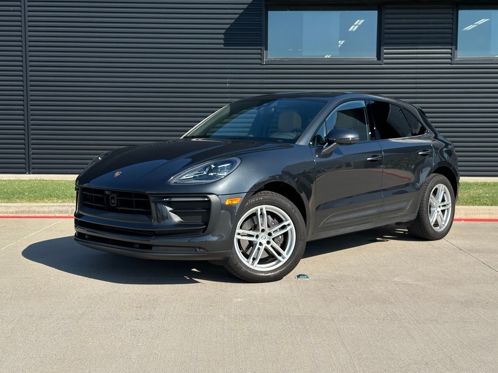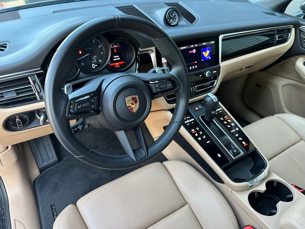 2025 Porsche Macan in Volcano Grey Metallic with Interior in Black/Mojave Beige. Under Porsche Approved Certified Pre-Owned Warranty for up to 3 Years and Unlimited Miles from Expiration of Porsche New Vehicle Warranty. New Vehicle Warranty Start Date is 10/10/2024. Premium Package Plus: Panoramic Roof, Power Seats (14-way) with Memory Package, Heated Seats (rear), Ventilated Seats (front), LED Headlights incl PDLS+, and Lane Change Assist. Also with: Window Trim in High Gloss Black, Deletion of Model Designation on Rear, Heated GT Sport Steering Wheel in Leather, BOSE Surround Sound, Under Door Puddle Light Projectors, Surround View, and Ionizer. Available at Porsche Grapevine 1280 Texan Trail Grapevine TX 76051.