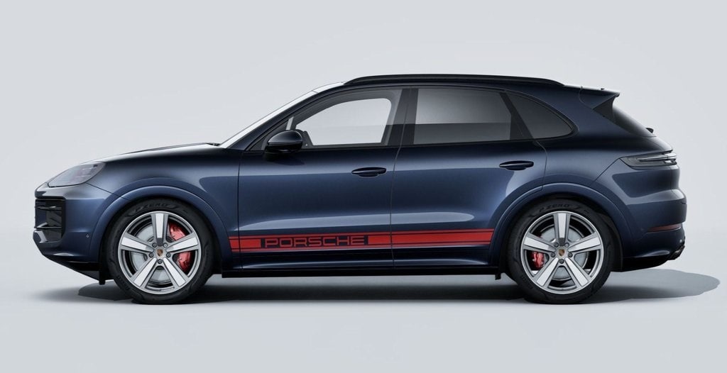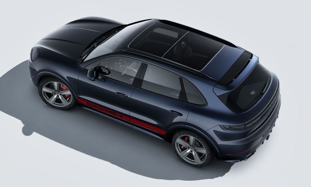 Algarve Blue Metallic 2026 Porsche Cayenne GTS AWD 8-Speed Automatic with Tiptronic V8 Black Leather.