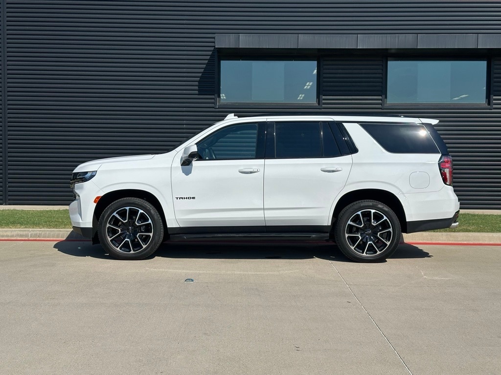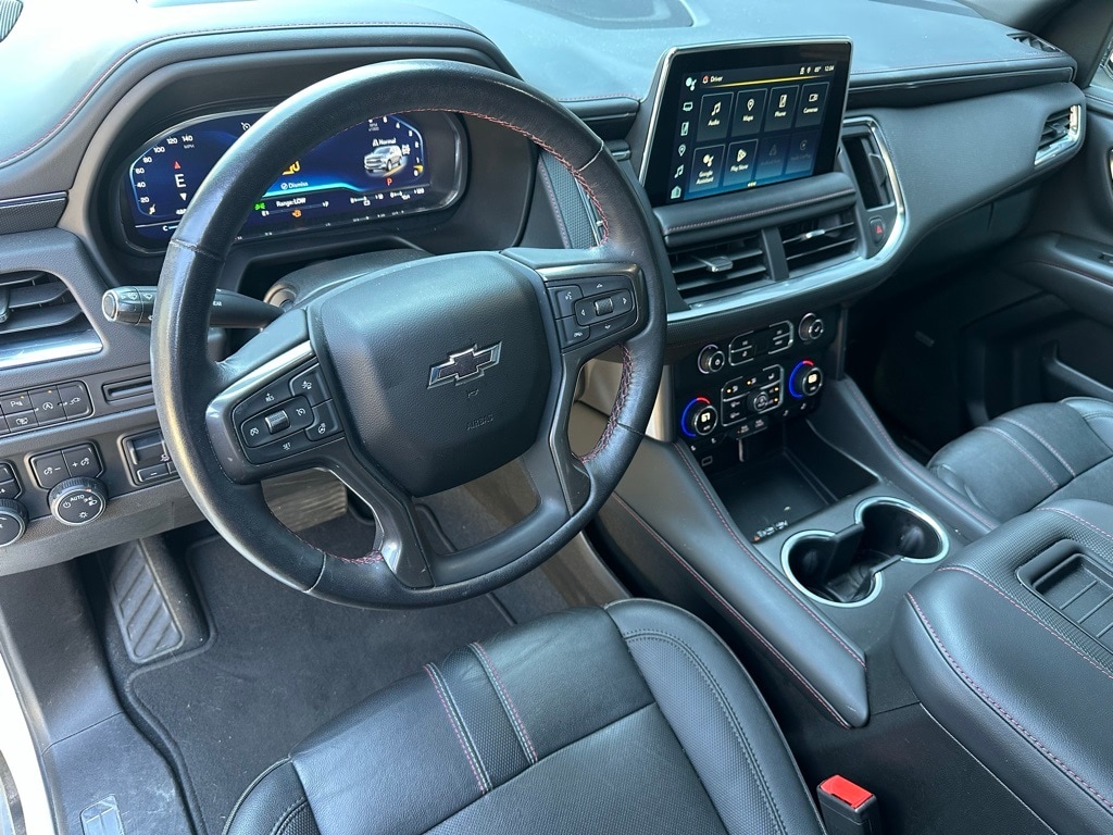 2022 Chevrolet Tahoe 4WD RST in Summit White with Interior in Jet Black / Victory Red. Sport Performance Package, Luxury Package, Max Trailering Package, and 2nd Row Bucket Seats. Available at Porsche Grapevine 1280 Texan Trail Grapevine TX 76051.