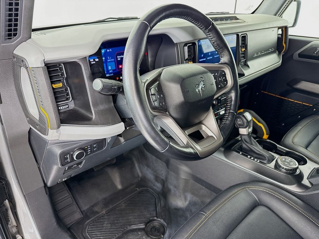 2022 Ford Bronco Badlands in Iconic Silver with Black Onyx Interior. Options Featured: Sasquatch Package, Floor Liners All Weather Mats, Towing Capability and Modular Front Bumper. Available at Porsche Grapevine 1280 Texan Trail Grapevine TX 76051.